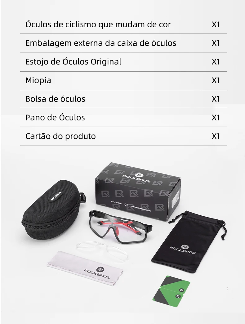 Curta seus passeios com visão clara e proteção total! Os óculos RockBros fotocromáticos se adaptam à luz do ambiente, protegendo seus olhos dos raios UV e do reflexo. Leves e confortáveis, são ideais para ciclismo, caminhada, corrida ou qualquer atividade ao ar livre.
